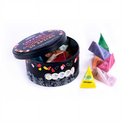 Boîte métal assortiment de 20 berlingots de différentes épices – Boîte de 20 berlingots